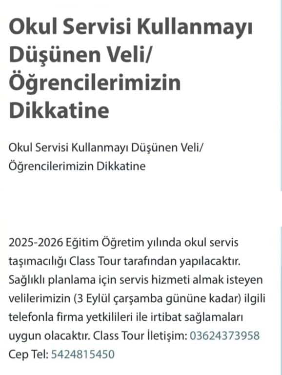 Okul Servisi Kullanmayı Düşünen Veli/ Öğrencilerimizin Dikkatine